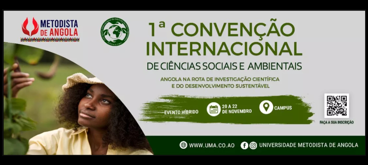 No ambito da socialização e divulgação dos saberes produzidos na nossa instituição, a exemplo de outras instituições de ensino superior de Angola, Africa, Europa, América e Ásia, realiza de 20 a 22 de Novembro de 2023, Universidade Metodista de Angola, em Luanda, a 1ªCONVENÇÃO INTERNACIONAL DE CIENCIAS SOCIAIS E AMBIENTAIS.