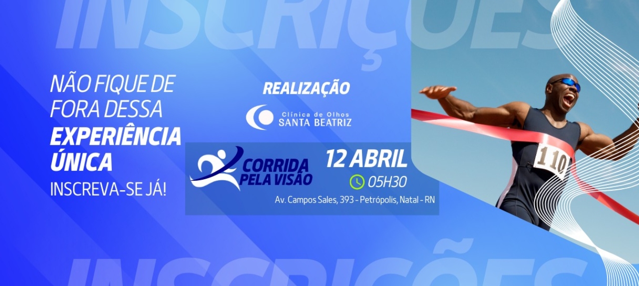 1.1 - A 2ª Corrida Pela Visão, promovida pela COSB (CLINICA DE OLHOS SANTA BEATRIZ), é uma corrida de rua com o intuito de trazer qualidade de vida para população em geral, com as distâncias de 2.5km de caminhada e 5km de corrida, a ser realizada no domingo, 12 de abril de 2026, com largada às 5:30hs, na AV: Campos Sales, 393 no largo do Atheneu com disponibilidade para 300 (trezentos) corredores. A largada se dará em quaisquer que sejam as condições climáticas do dia, desde que não ofereçam riscos aos participantes.