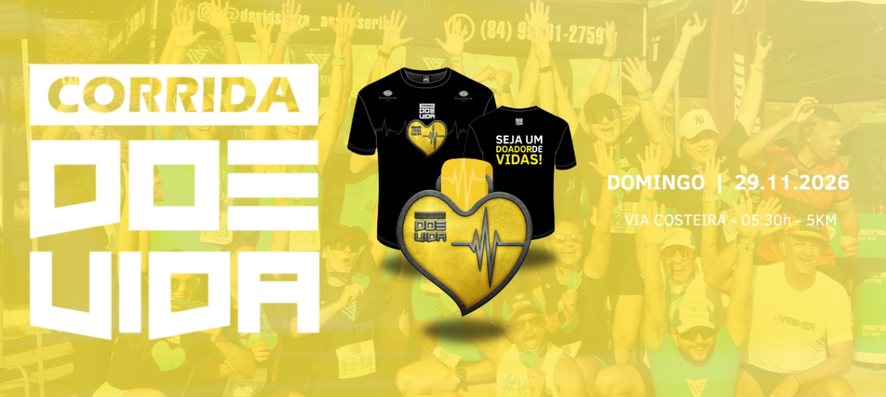 4º - A 5ª CORRIDA DOE VIDA será realizada no domingo, 29 de novembro de 2026 às 5:30h, largada na Via Costeira – Parte baixa Centro de Convenções – com percurso de 5km.