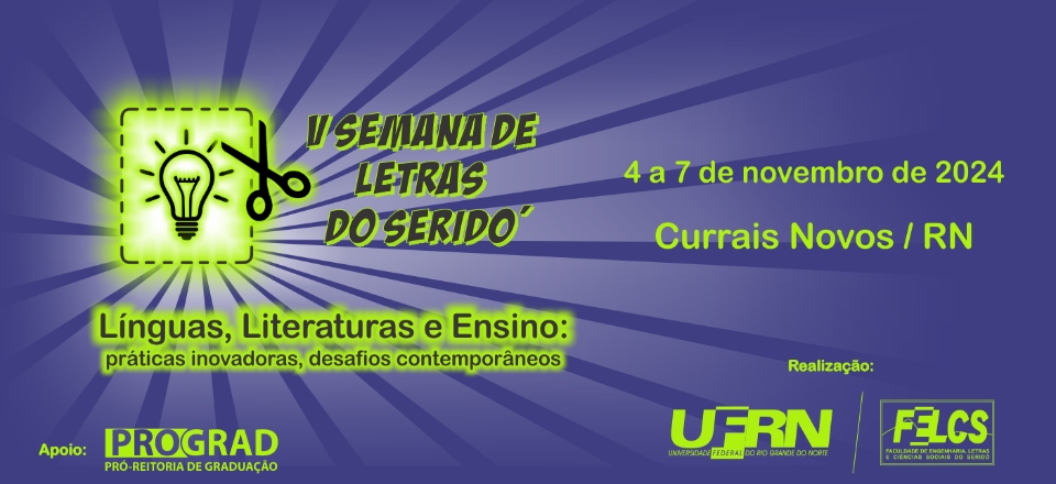 A V Semana de Letras do Seridó é uma iniciativa da Faculdade de Engenharia, Letras e Ciências Sociais do Seridó (FELCS), da Universidade Federal do Rio Grande do Norte (UFRN), a ser realizada no período de 04 a 07 de novembro de 2024. O evento, que a cada edição vem superando todas as expectativas em relação ao número de trabalhos submetidos e participantes inscritos, consolidou-se no calendário acadêmico da FELCS, dada sua constante contribuição para a melhoria dos dois cursos de graduação em Letras oferecidos por esta unidade acadêmica. Além disso, é intuito da Semana de Letras do Seridó, desde a sua primeira edição, fortalecer a interiorização da UFRN através de atividades que privilegiem o ensino público, gratuito, inclusivo, laico, inovador e de qualidade. A intersecção entre línguas, literaturas e ensino é um aspecto importante no desenvolvimento educacional, desempenhando um papel crucial na formação docente. Dessa forma, o tema “Línguas, Literaturas e Ensino: Práticas Inovadoras, Desafios Contemporâneos”, escolhido para nortear as discussões e atividades da 5ª Semana de Letras do Seridó, abre caminho para a reflexão sobre a importância de abordagens criativas e atuais na formação docente no século XXI. Ao se considerar as diversidades linguística e literária como riquezas culturais que precisam ser exploradas no contexto educacional, a formação docente centrada nessas áreas permite que docentes compreendam e valorizem a multiplicidade de vozes presentes em suas salas de aula. Ao integrar práticas inovadoras, os educadores podem criar ambientes de aprendizado inclusivos, promovendo a apreciação e o entendimento das diferentes línguas e literaturas presentes na sociedade. Além disso, as práticas inovadoras no ensino de línguas e literaturas capacitam os profissionais a enfrentarem os desafios contemporâneos. No mundo digital de hoje, a tecnologia desempenha um papel significativo no acesso à informação. Logo, a formação docente nesse contexto deve incluir estratégias que incorporem ferramentas digitais, tornando o ensino mais dinâmico e alinhado às demandas da era digital. A integração de recursos multimídia, plataformas online, métodos interativos e da inteligência artificial não apenas atrai a atenção dos estudantes, mas também os prepara para a complexidade do mundo moderno. Outro ponto fundamental é a abordagem interdisciplinar que esse tema pode proporcionar através da integração entre línguas, literaturas, estimulando uma compreensão mais holística do conhecimento. Por meio de conferências, mesas-redondas, minicursos e comunicações, pretende-se discutir e dar visibilidade ao referido tema, privilegiando os componentes curriculares previstos nas estruturas curriculares dos cursos de Letras oferecidos pela FELCS, que sejam relevantes para a formação acadêmica e profissional dos estudantes. O debate abrangerá, portanto, a investigação e o ensino de línguas e de literaturas impactados pela inovação, a partir de concepções que as privilegiem como práticas sociais.