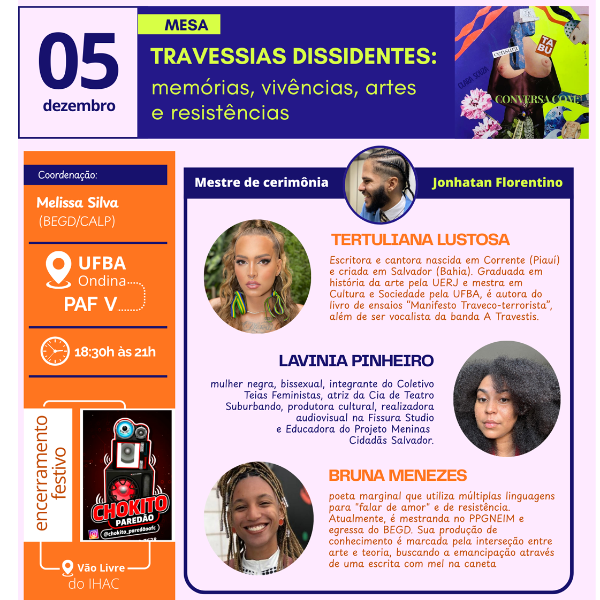 Sob o tema “Corpos que Sabem, Vozes que Criam: Saberes Dissidentes e Arte como Resistência”, a 8ª edição propõe refletir sobre os modos como corpos dissidentes produzem conhecimento, arte e resistência, desafiando normas de gênero, raça, sexualidade e capacidade.