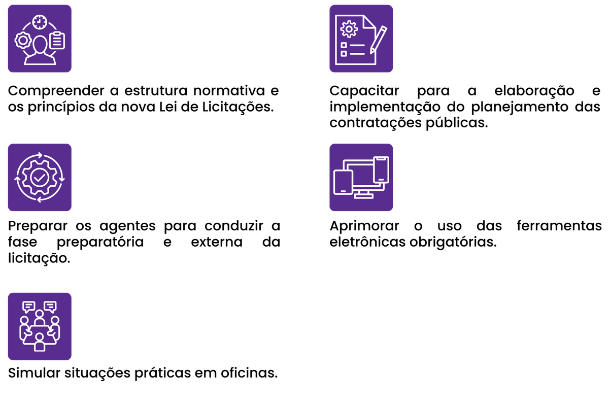O curso "Formação de Agentes de Contratação e Pregoeiros", promovido pela Gov Academy, tem como foco a capacitação prática e teórica dos servidores públicos municipais para a implementação eficaz da Lei nº 14.133/2021, proporcionando uma visão integrada e aprofundada sobre os principais desafios enfrentados na área de compras governamentais.