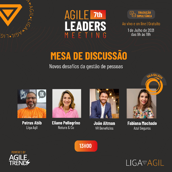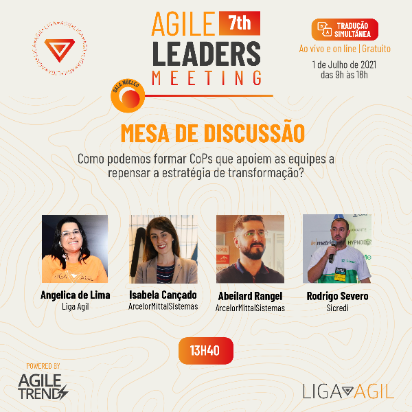 O Agile Leards Meeting é um evento online e gratuito com o propósito de disseminar agilismo e inovação em um dia de muita troca de conhecimento, aprendizado e conexões.