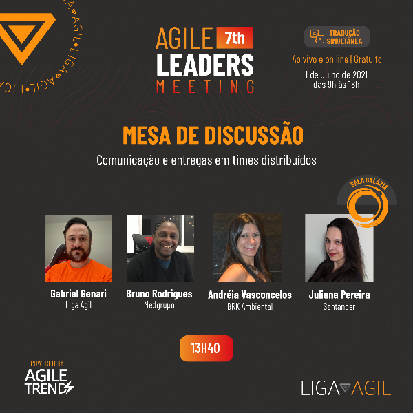 Comunicação e entregas em times distribuídos Mesa-redonda · Andréia Vasconcelos, Bruno Rodrigues, Gabriel Genari, Juliana Pereira