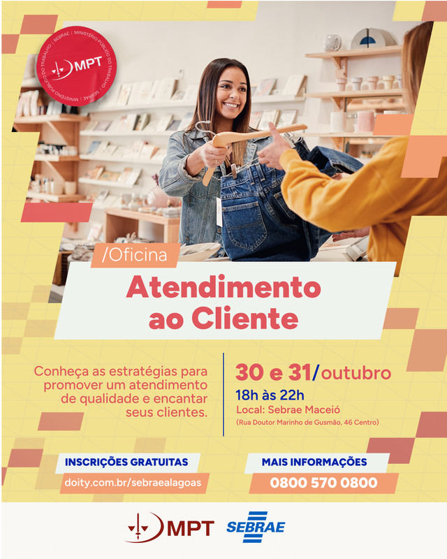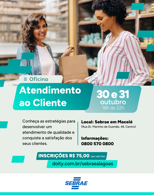Transforme seu atendimento ao cliente e libere todo o potencial de crescimento do seu negócio com a expertise do Sebrae Alagoas. Inscreva-se já e veja sua empresa florescer.