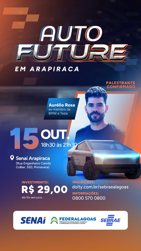Quem conduz essa jornada é Aurélio Rosa, referência internacional em mobilidade elétrica, inteligência artificial e sistemas autônomos. Engenheiro formado pela Unicamp e pela Universidade Técnica de Munique, com passagem marcante pela BMW e quase uma década na Tesla, onde atuou no desenvolvimento do Autopilot e de modelos icônicos como o Model S, X e 3, Aurélio traz para o Agreste Alagoano sua visão prática e inspiradora sobre o futuro do transporte global.