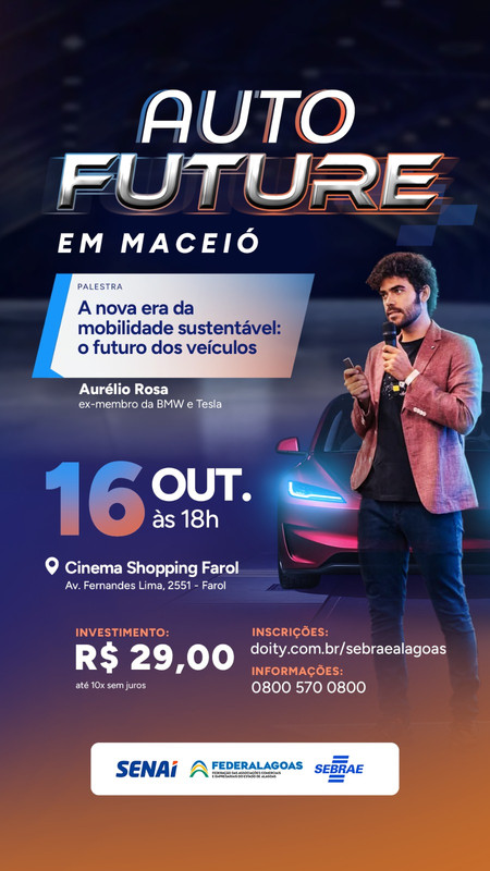 19h - Palestra: "A nova era da mobilidade sustentável: o futuro dos veículos", com Aurélio Rosa