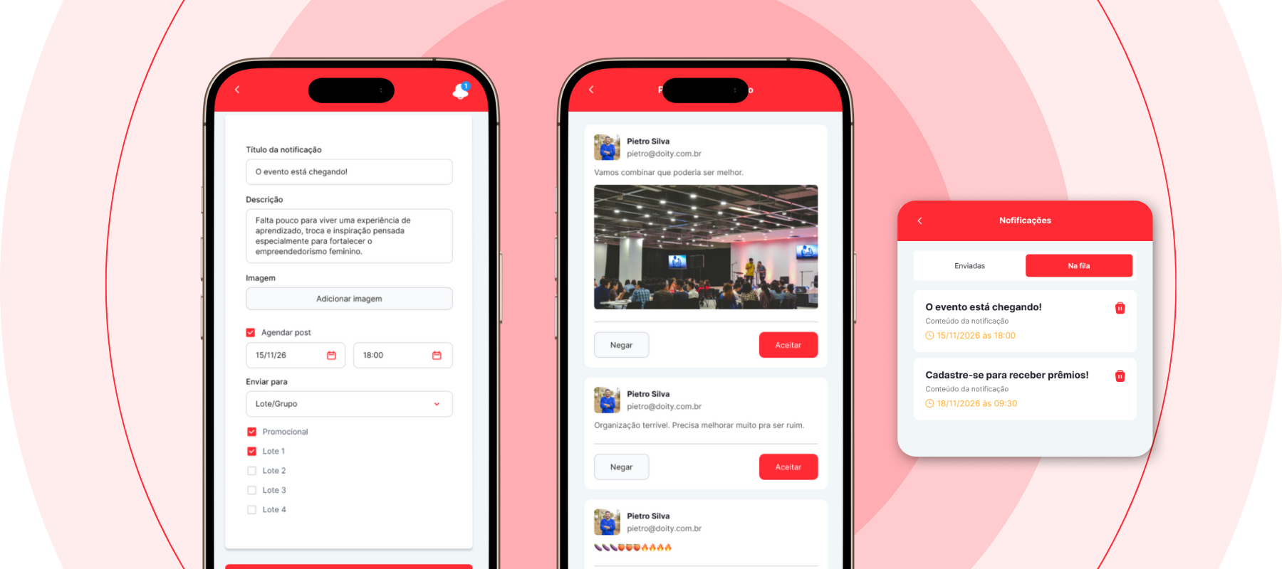 Com moderação e controle total por parte do organizador, o app se transforma em um espaço seguro e ativo de troca, fortalecendo o senso de pertencimento e mantendo sua marca presente no dia a dia do público.