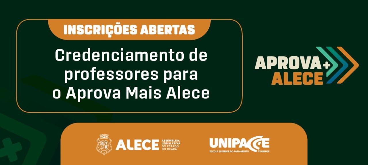 Link para inscrição no credenciamento de profissionais da educação para a prestação de eventuais serviços em cursos preparatórios para concursos públicos, por meio do Aprova+ Alece, ofertados pela Escola Superior do Parlamento Cearense - Unipace, nos termos do Edital de Credenciamento nº 177/2025.