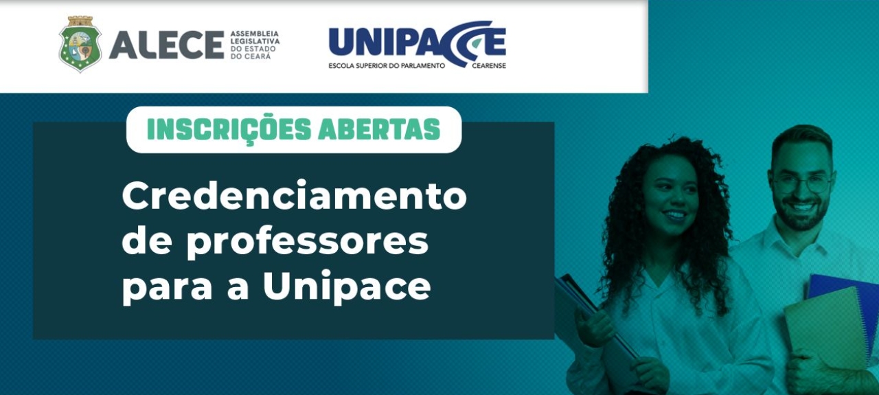 Link para inscrição no credenciamento de profissionais da educação para a prestação de eventuais serviços em cursos e programas de aperfeiçoamento, capacitação técnica e especialização ofertados pela Escola Superior do Parlamento Cearense - Unipace, nos termos do Edital de Credenciamento nº 205/2025.