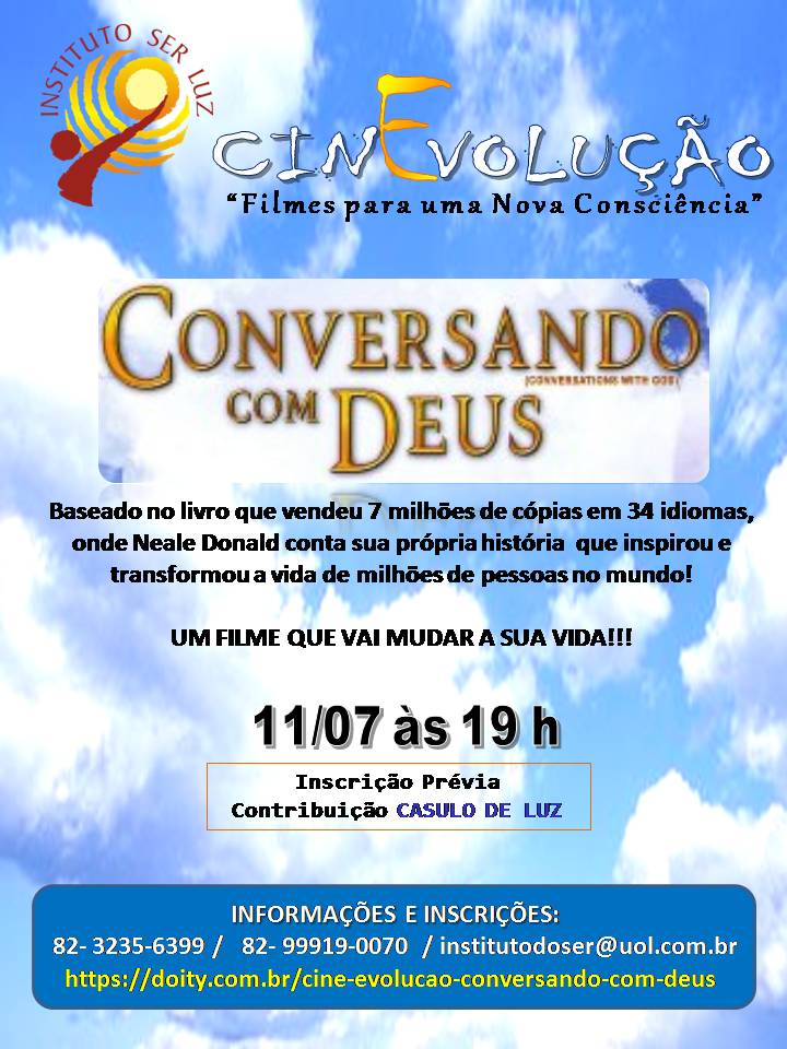 O filme CONVERSANDO COM DEUS é baseado no livro homônimo escrito por Neale Donald Walsch, contando sua própria história, que inspirou e transformou a vida de milhões de pessoas ao redor do mundo.