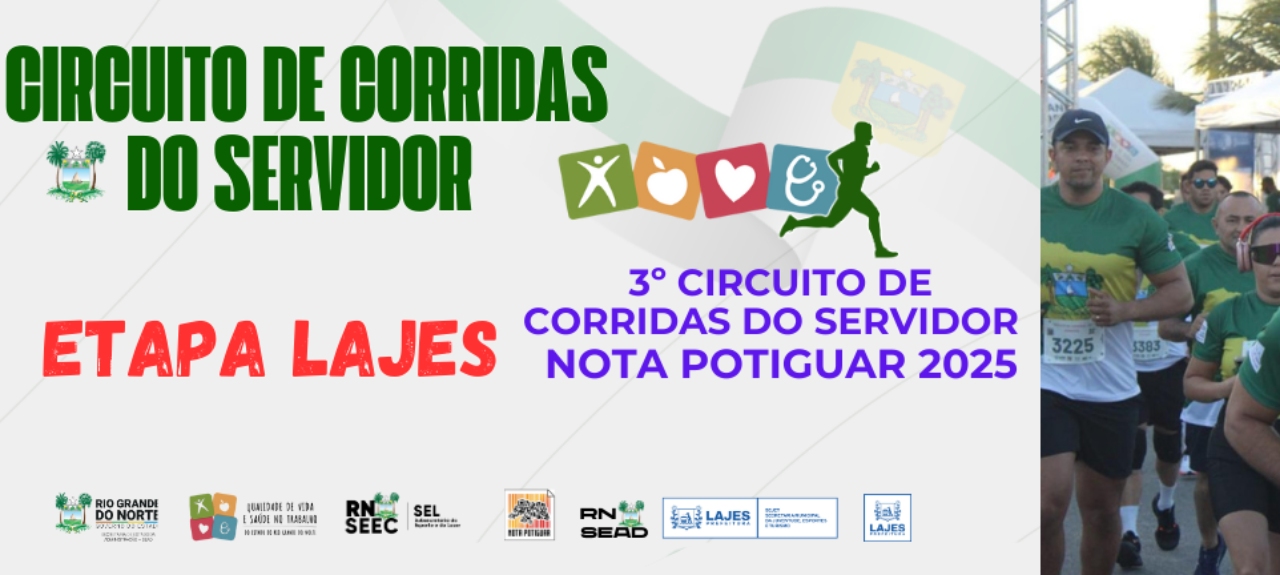 O CIRCUITO DE CORRIDAS DO SERVIDOR é uma corrida de confraternização promovido pelo Governo do RN, através do Programa de Qualidade de Vida e Saúde no Trabalho – PQVST vinculado a Secretaria de Estado da Administração com o apoio da Subsecretaria de Esportes e Lazer da Secretaria de Educação/SEEC e do Programa Nota Potiguar, da Secretiaria de Fazenda/SEFAZ e neste evento em parceiria com Prefeitura Municipal de Lajes, através da Secretaria Municipal Juventude, Esportes e Turismo.