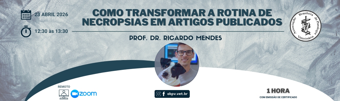 A transmissão ao vivo do evento será gratuita, permitindo que todos os interessados acompanhem a palestra. Após a realização, a gravação ficará disponível na área restrita para os associados da Associação Brasileira de Patologia Veterinária (ABPV), garantindo acesso exclusivo ao conteúdo para quem faz parte da entidade.