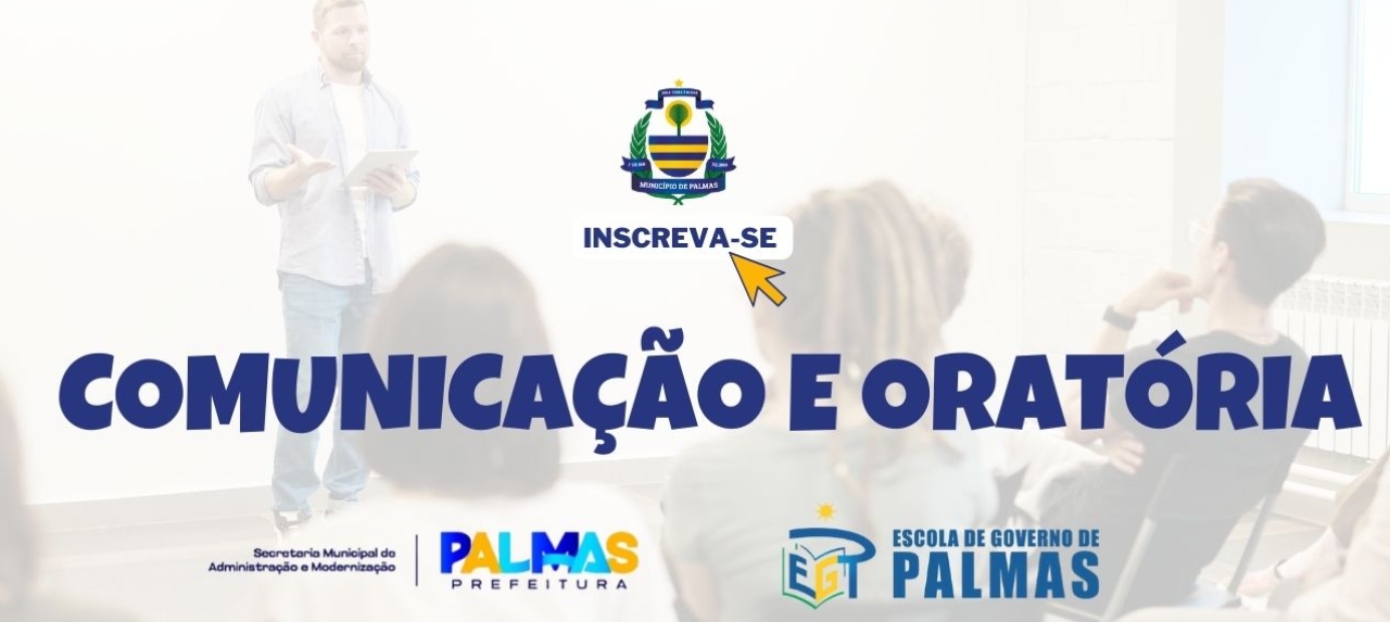 A Escola de Governo de Palmas (EGP), vinculada à Secretaria Municipal de Administração e Modernização (SECAD), promoverá o curso “Comunicação e Oratória”, que tem como objetivo capacitar servidores públicos da Prefeitura Municipal de Palmas no desenvolvimento de competências relacionadas à comunicação verbal e não verbal, superação do medo de falar em público, aprimoramento da dicção, modulação vocal e uso eficaz da linguagem corporal, contribuindo para maior segurança e clareza na transmissão de mensagens.