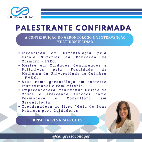A Contribuição do Gerontólogo na Intervenção Multidisciplinar Palestra · Rita Taipina Marques