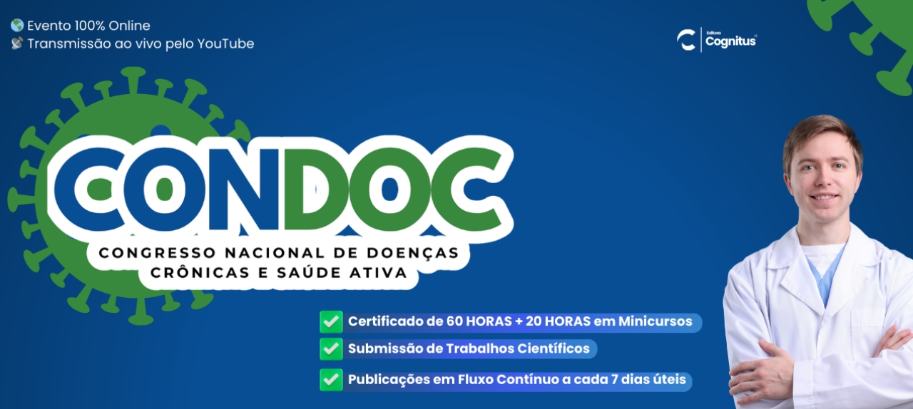 O I Congresso Nacional de Doenças Crônicas e Saúde Ativa (CONDOC) é um evento científico 100% online, que acontecerá nos dias 10 e 11 de julho de 2026, reunindo profissionais, pesquisadores, docentes, estudantes e gestores da área da saúde de todo o Brasil.