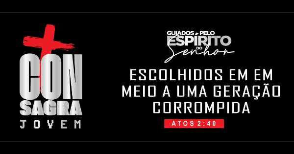 Esse é o momento de abrir espaço em sua agenda e se entregar a uma experiência única, que irá marcar sua vida para sempre. Venha vivenciar o Consagra Jovem e permita que Deus faça maravilhas em sua vida. Faça parte desse movimento de jovens apaixonados por Jesus e prepare-se para ser impactado de forma extraordinária!