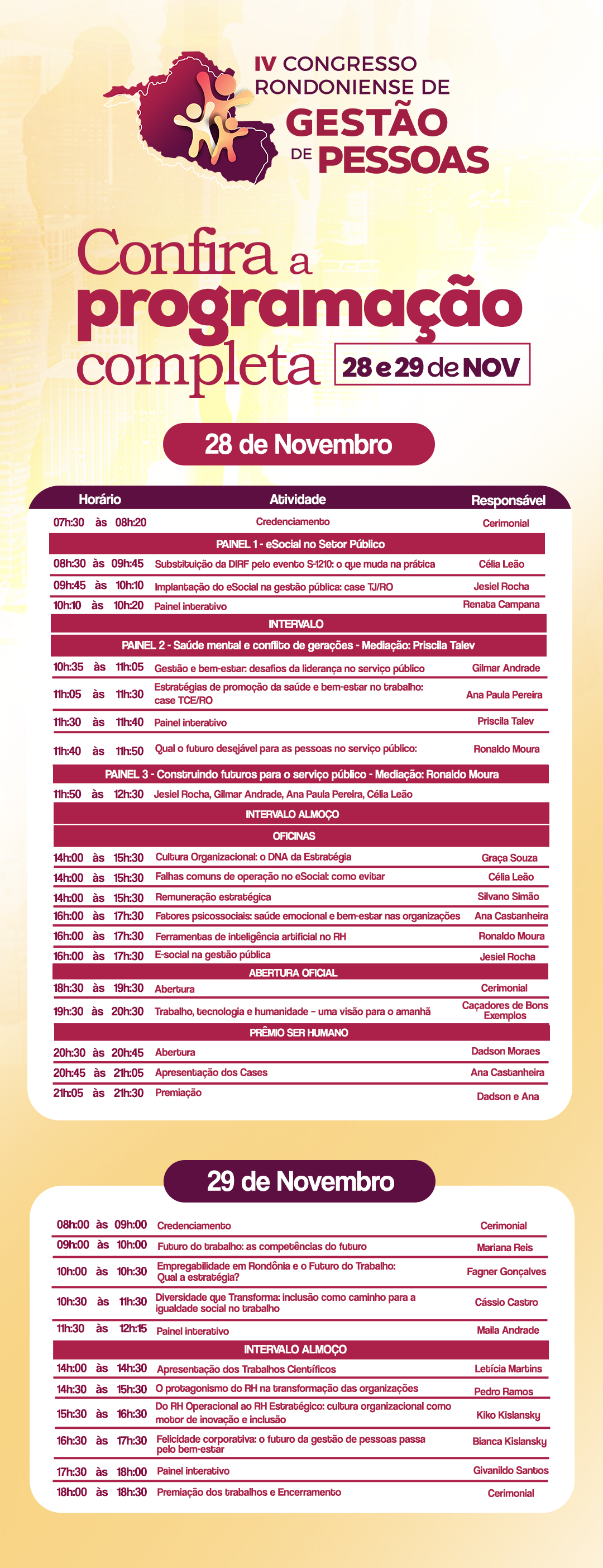 Com o tema central “O futuro do trabalho: tendências e impactos na gestão de pessoas”, o evento reunirá gestores de pessoas, profissionais de administração, consultores, psicólogos, estudantes e todos que acreditam no poder da gestão de pessoas para transformar organizações e a sociedade.