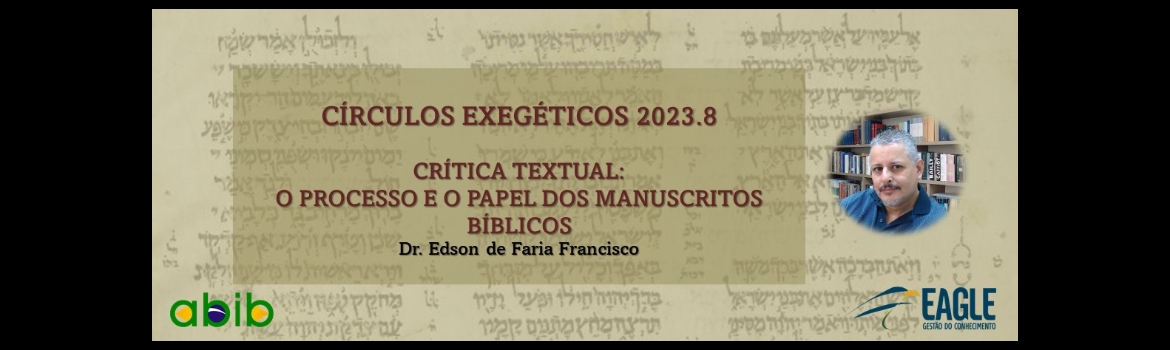 Círculos Exegéticos é a série de minicursos gratuitos sobre exegese e interpretação bíblica. Acontecem em circuito fechado com vagas limitadas. Estes são temas de conteúdos instrucionais da especialização em Exegese Bíblica oferecida pela Eagle cujas aulas abrimos para o público em geral. Nesta edição o Dr. Edson de Faria Francisco nos apresentará uma breve introdução ao processo de crítica textual e do papel dos manuscritos bíblicos. Este encontro é uma introdução ao curso que será ministrado aqui na Eagle pelo professor Edson nos meses de setembro e outubro.
