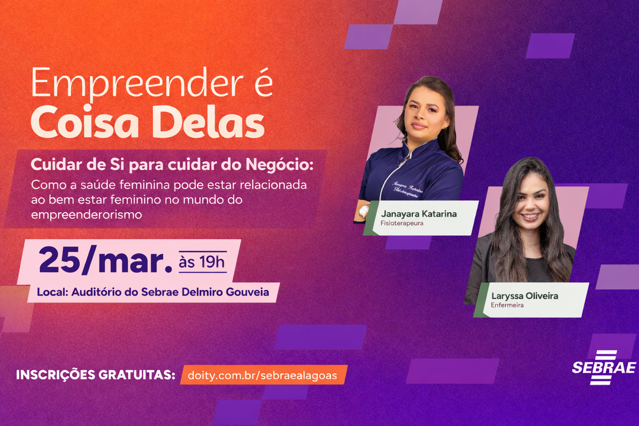 Garanta sua vaga gratuita agora! Porque empreender é coisa delas. E o Sebrae caminha junto com você nessa jornada.