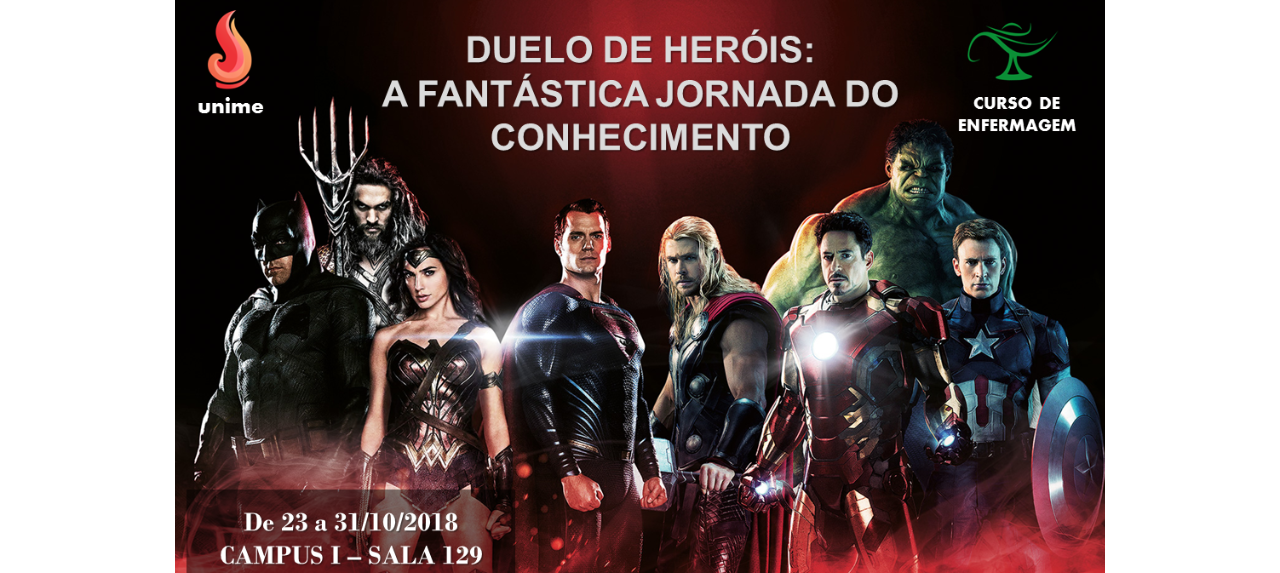O DUELO DE HERÓIS: A fantástica jornada do Conhecimento foi preparada com muito carinho e entusiasmo pra você, aluno de Enfermagem da Unime que está se preparando para um futuro brilhante, recheado de oportunidades, porque VOCÊ É O NOSSO SUPER-HERÓI! Embarque nessa aventura com a gente! Aproveite, sigam nossas redes sociais e fique por dentro de tudo que estamos preparando pra você!