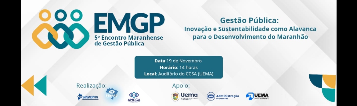 Com o tema principal "Gestão Pública: Inovação e Sustentabilidade como Alavanca para o Desenvolvimento do Maranhão", o evento será realizado no dia 19 de Novembro, às 14h, no Auditório do Centro de Ciências Sociais Aplicadas da Universidade Estadual do Maranhão (CCSA/UEMA). Com certificação de 08h, o evento objetiva reunir profissionais, acadêmicos e gestores, bem como explorar os diversos ecossistemas de inovação e sustentabilidade dentro da Gestão Pública.