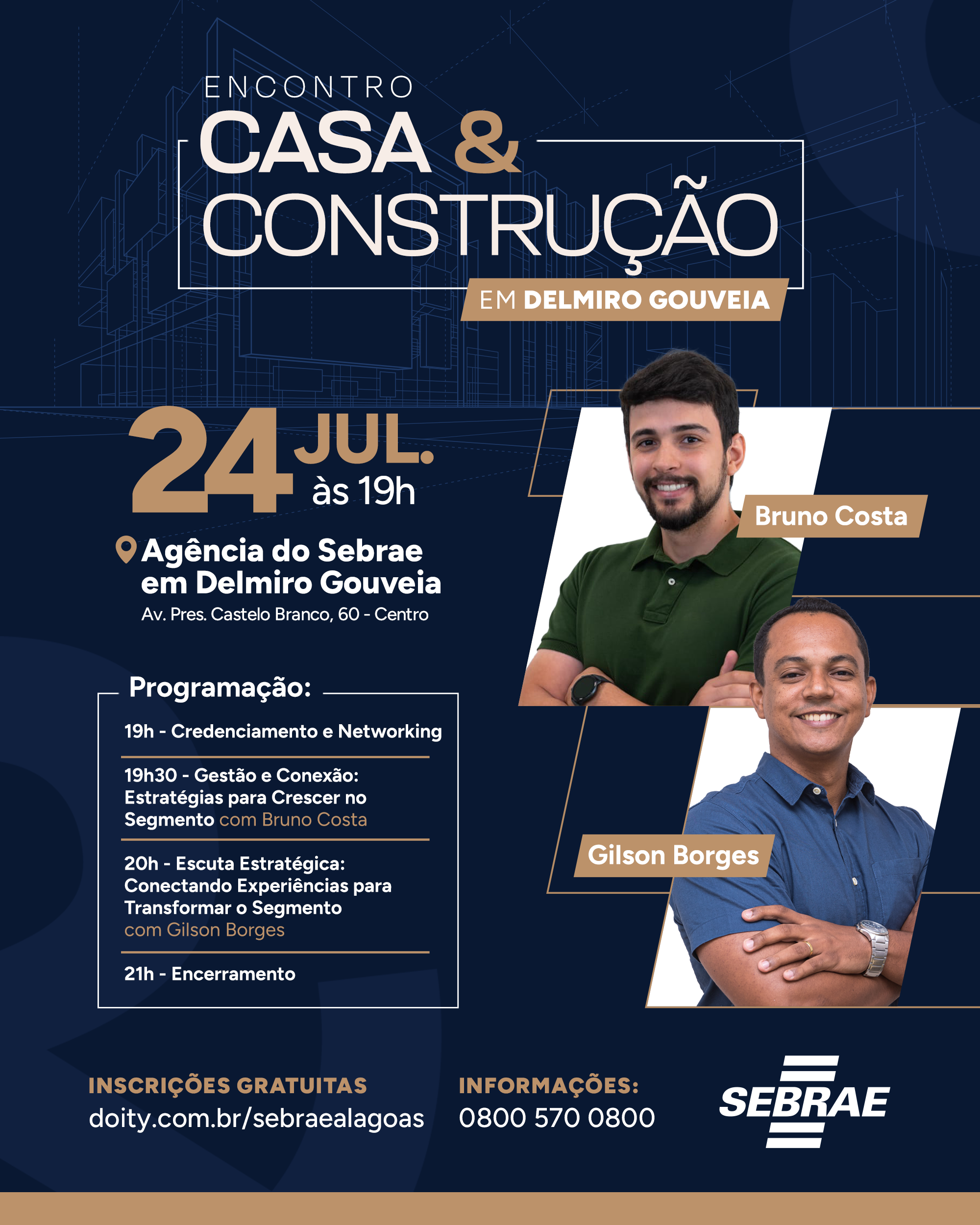 O Sebrae convida você para o 1º Encontro Casa & Construção do Sertão, um evento exclusivo para empresários, prestadores de serviços e profissionais técnicos que atuam no setor.