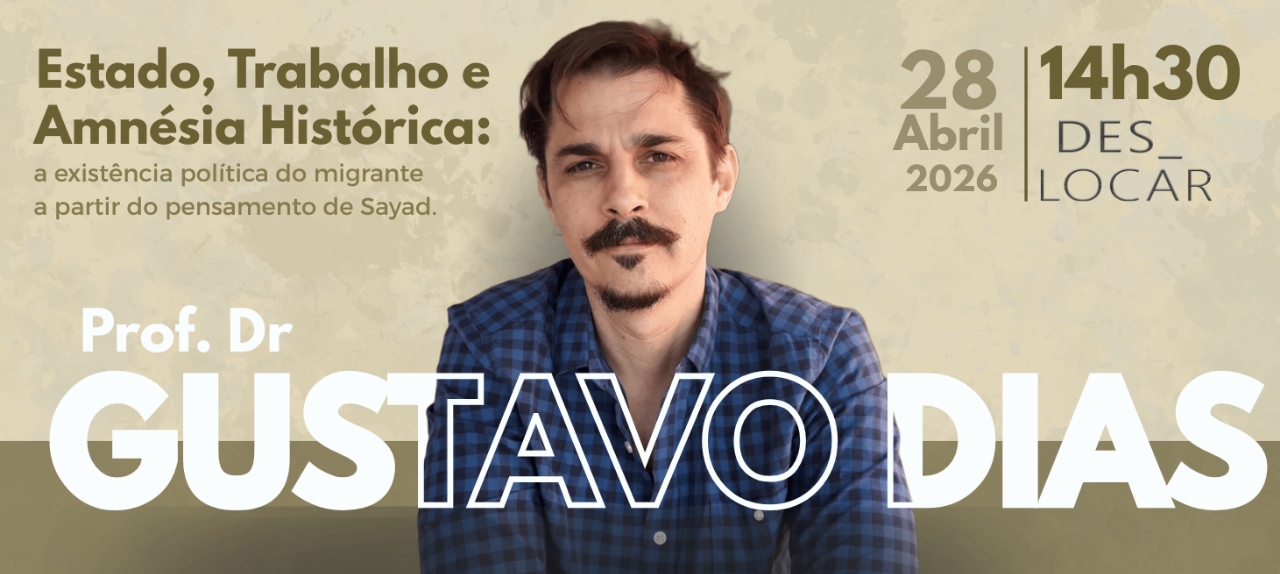 Como pensar a existência política do migrante na contemporaneidade? No dia 28 de abril, o Prof. Dr. Gustavo Dias (Unimontes) é o convidado do Grupo de Pesquisa Deslocar para a apresentação e debate sobre a obra de Abdelmalek Sayad e suas interseções com o Estado e o trabalho.