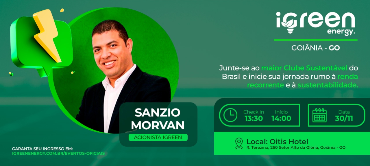 Junte-se a nós neste Evento Presencial iGreen! Descubra como gerar RENDA RECORRENTE através da Economia Sustentável. Participe do evento, aprenda estratégias essenciais para prosperar neste universo. Vamos construir um futuro mais sustentável, juntos!