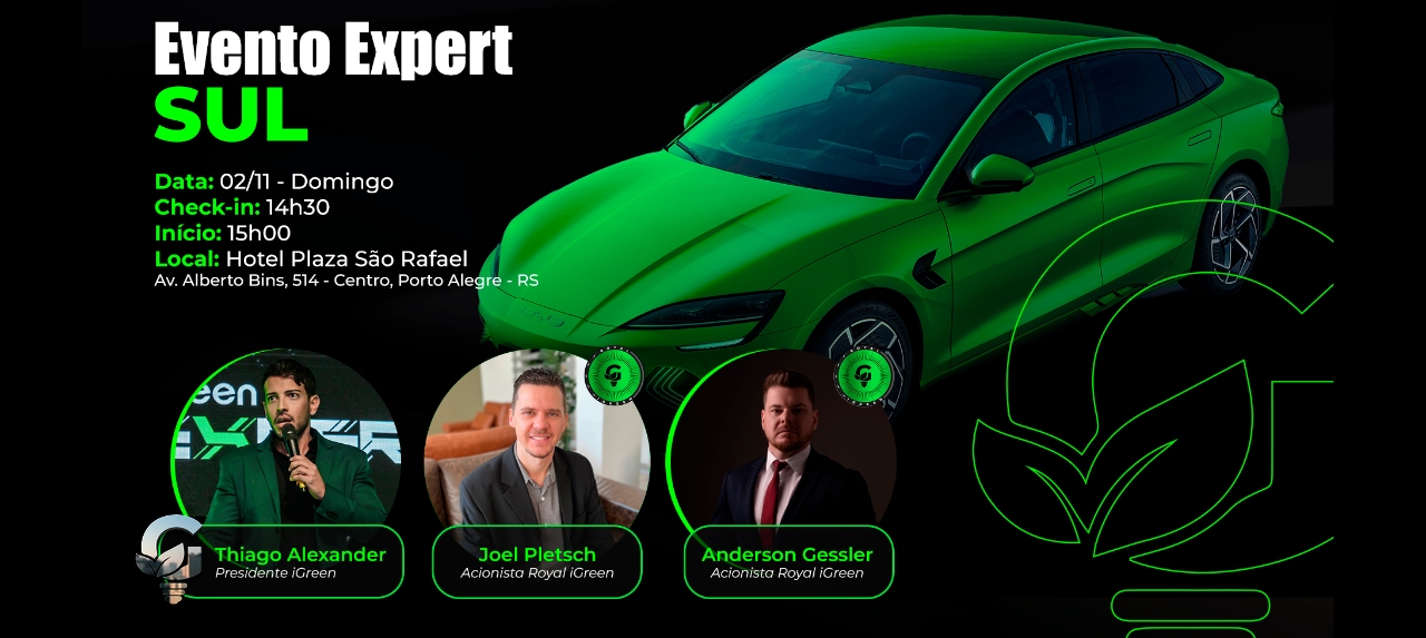 Junte-se a nós neste Evento Presencial iGreen! Descubra como gerar RENDA RECORRENTE através da Economia Sustentável. Participe do evento, aprenda estratégias essenciais para prosperar neste universo. Vamos construir um futuro mais sustentável, juntos!