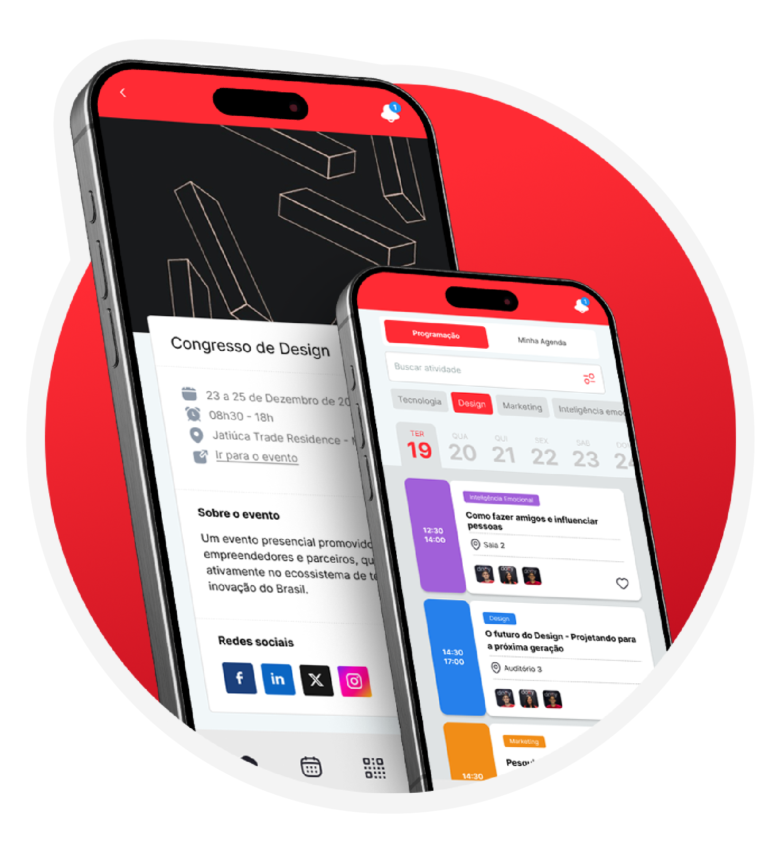 Organize e participe de eventos incríveis. Viva e promova experiências inesquecíveis. Do presencial ao virtual, do pré ao pós-evento: tudo em um só lugar!
