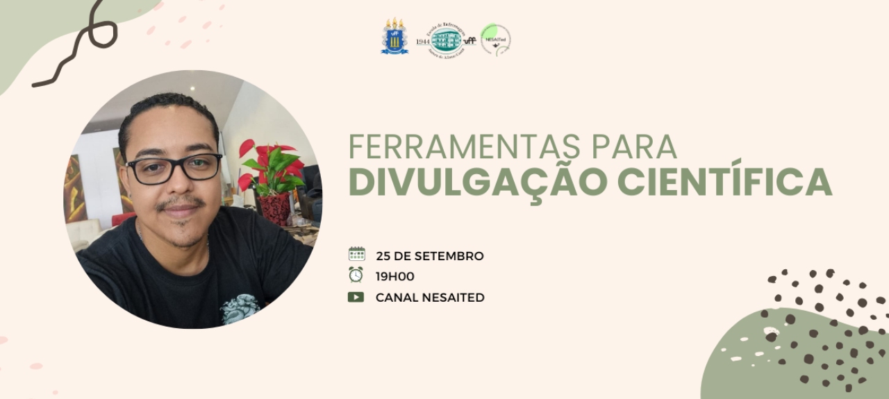 Venham se inscrever no Evento “Ferramentas de Divulgação Científica” organizado pelo Núcleo de Estudos de Saúde do Adulto e do Idoso em Tecnologias Educacionais (NESAITed), a ser realizado de forma virtual.
