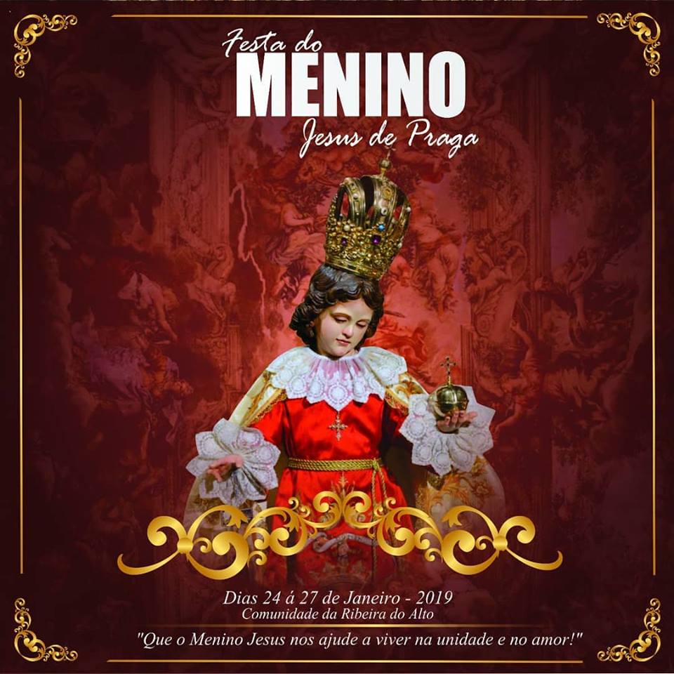 Queridos irmãos e irmãs neste ano que começamos a nossa comunidade da Ribeira do Alto, em comunhão com a nossa paróquia, tem a alegria de celebrar a festa em honra ao seu padroeiro, o Menino Jesus de Praga. Este ano meditaremos o tema “Que o Menino Jesus nos ajude a viver na unidade e no amor” sendo nós convidados a sermos como Ele, semeador da paz, unidade e amor sempre dispostos e engajados na construção do Reino de Deus. Portanto você é convidado a participar desse momento de festa e intensa alegria. Onde uma programação especial está sendo preparada para você e sua família. Além de sua ilustre presença, pedimos a colaboração de todos para que possamos dar continuidade e honrar nossos compromissos com a construção da nossa capela.