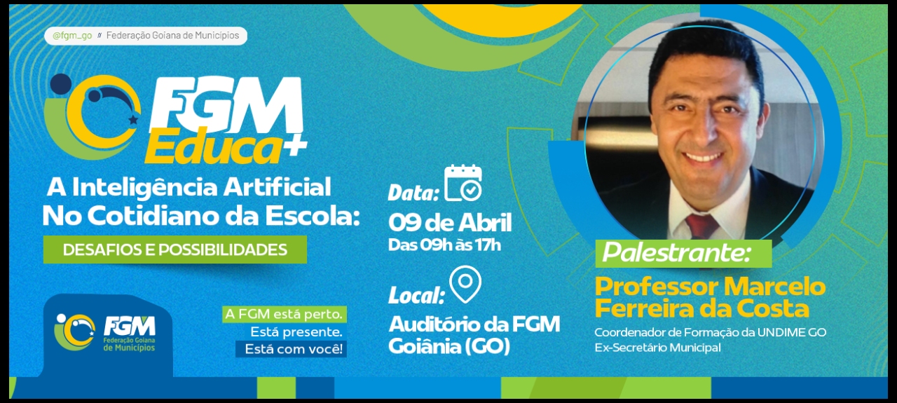 A Federação Goiana de Municípios (FGM), por meio do programa FGM Educa+, promove o debate “A Inteligência Artificial no Cotidiano da Escola: Desafios e Possibilidades”, uma iniciativa voltada à reflexão sobre o impacto das novas tecnologias no ambiente educacional e às oportunidades que elas oferecem para o fortalecimento da educação pública.