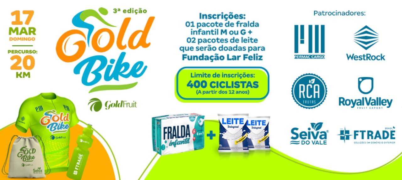 GOLD BIKE – passeio ciclístico com a participação de 300 ciclistas que será realizado na cidade de Petrolina-PE, no dia 17 de março, com o objetivo de incentivar o meio de vida saudável, interação do indivíduo na sociedade, difundir e fomentar a prática do ciclismo.