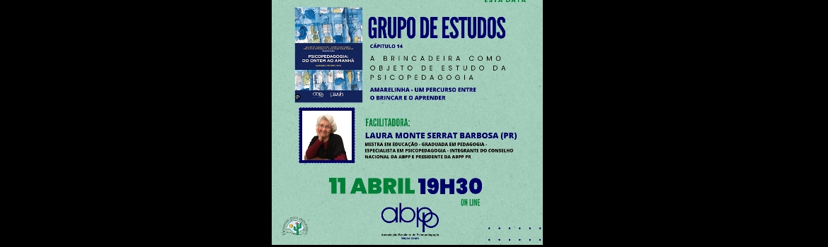 Comprometida com a formação continuada de seus associados, a Associação Brasileira de Psicopedagogia - Seção CE promoverá o grupo de estudos, do livro Psicopedagogia: Do Ontem ao Amanhã - Avanços e Perspectivas, Capítulo 14 - A Brincadeira como Objeto de Estudo da Psicopedagogia - Amarelinha - Um Percurso entre o Brincar e o Aprender.