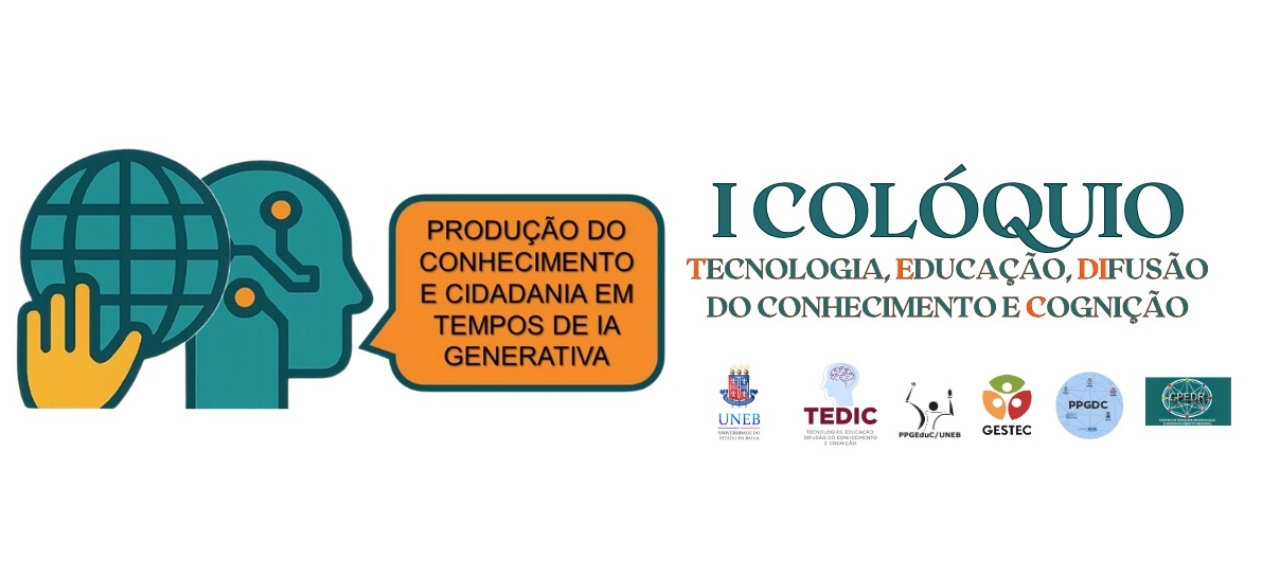 Esta 1ª edição do Colóquio tem como TEMA: Produção do conhecimento e exercício da cidadania em tempos de IA generativa, considerando as demandas contemporâneas que têm emergido nas pesquisas e estudos desenvolvidos pelo grupo. Para abordar essa desafiadora temática, o evento receberá pesquisadores reconhecidos pela sua contribuição na área, tanto dos Programas aos quais o Grupo TEDIC é vinculado (Mestrado Profissional em Gestão e Tecnologias Aplicadas a Educação - GESTEC e Programa de Pós-graduação em Educação e Contemporaneidade - PPGEDUC / DEDC I /UNEB) quanto convidados de outras IPES e estados.