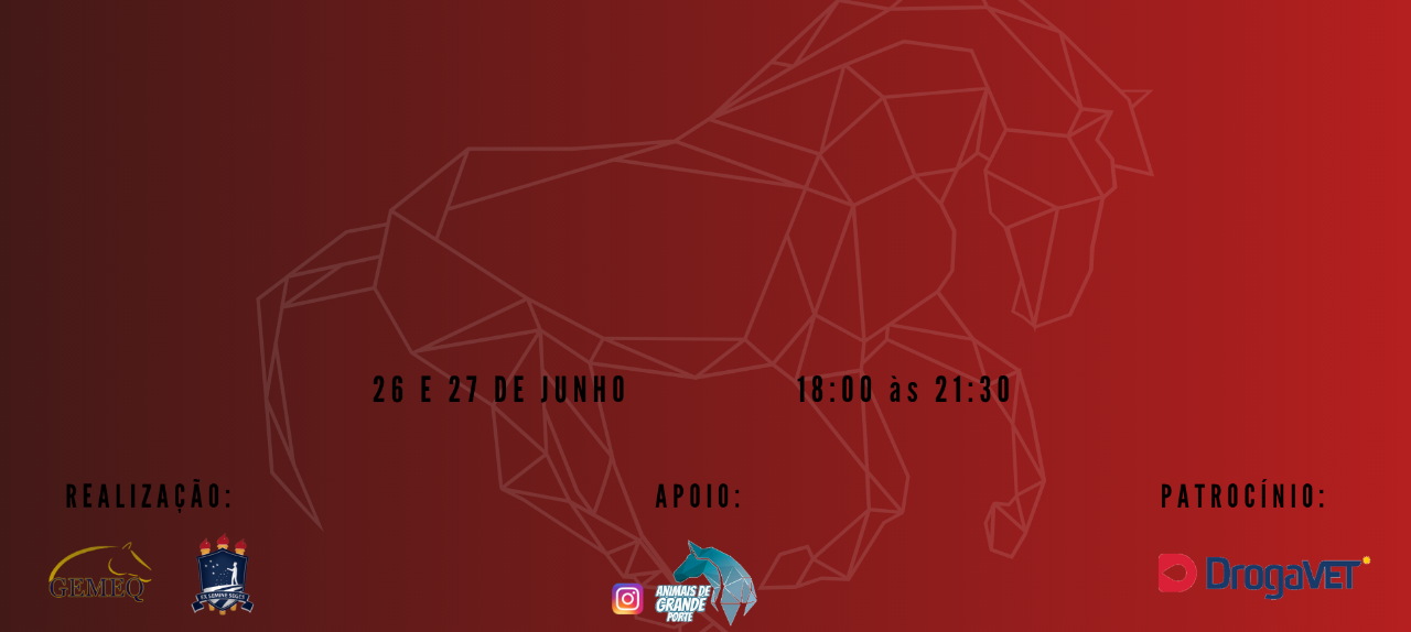 Com o intuito de ampliar os conhecimentos acerca da abordagem clínico-cirúrgica de pacientes equinos em estado emergencial, o Grupo de Estudos em Medicina Equina (GEMEQ - UFRPE) promoverá o evento com enfoque nas áreas de clínica e cirurgia veterinária destacando-se as emergências dos aparelhos locomotor, digestório e reprodutor. O evento ocorrerá no Auditório do CEGOE/UFRPE, nos dias 26 e 27 de junho de 2019, no horário das 18:00 às 21:30 h, e contará com a presença de palestrantes renomados na área com grande experiência no atendimento hospitalar a cavalos em emergência. Serão realizadas duas palestras por dia e uma mesa redonda para discussão de temas relacionados.