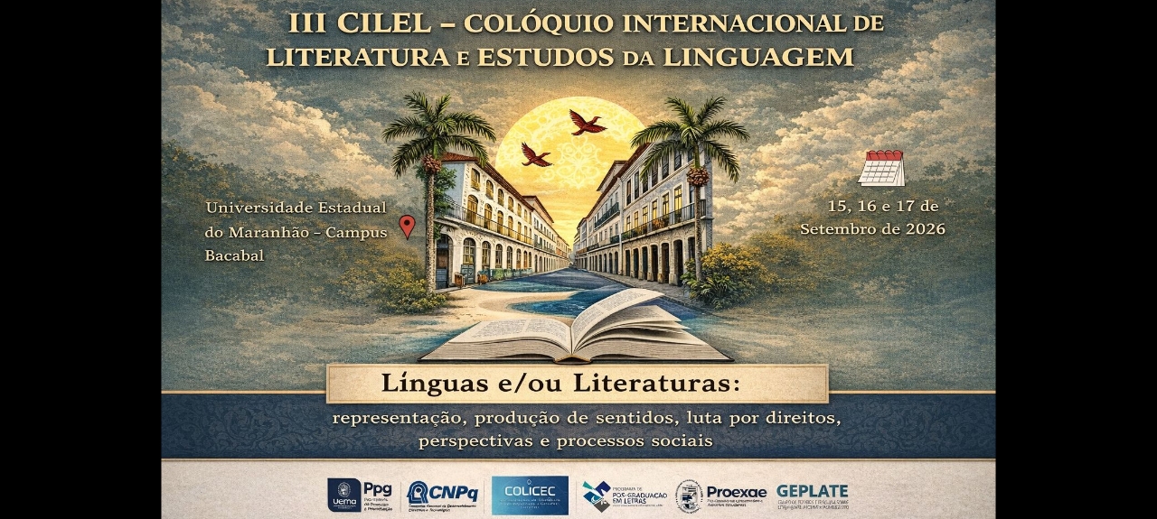 Estão abertas as inscrições para o III CILEL – Colóquio Internacional de Literatura e Estudos da Linguagem. O evento acontecerá nos dias 15, 16 e 17 de setembro de 2026, na Universidade Estadual do Maranhão (UEMA), Campus Bacabal.