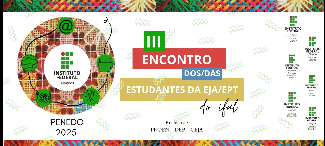 O Encontro das/dos Estudantes da EJA/EPT do Ifal está em sua terceira edição. O evento conta com uma programação dinâmica, atrativa que visa a socialização e o avanço no diálogo acadêmico, científico e político. Ademais, objetiva o compartilhamento de conquistas e realizações, bem como a proposição de alternativas para as dificuldades apresentadas para a modalidade de ensino.