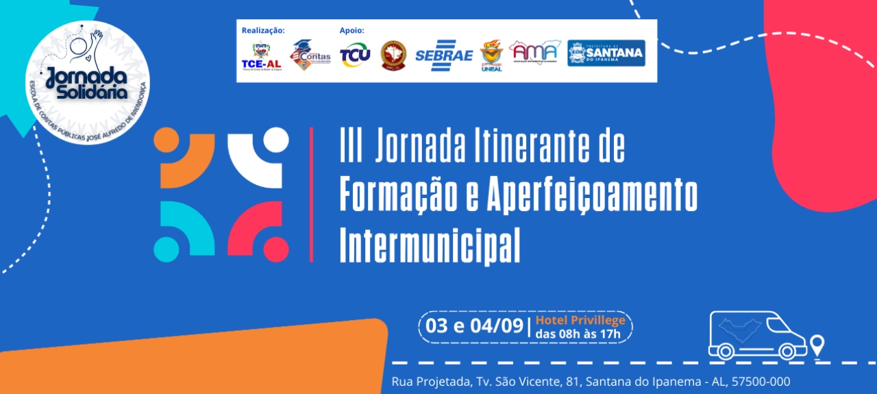 A III Jornada Itinerante de Formação e Aperfeiçoamento Intermunicipal, a ocorrer nos dias 3 e 4 de setembro de 2025, no município polo de Santana do Ipanema, conforme programação.