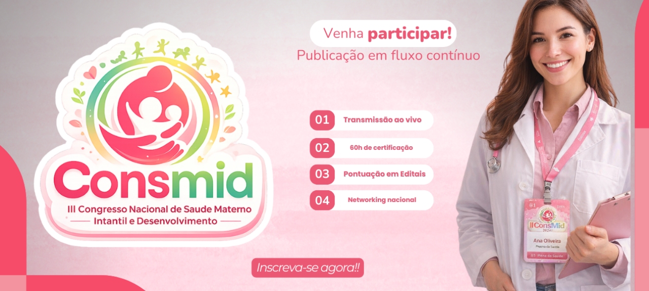O III Congresso Nacional de Saúde Materno-Infantil e Desenvolvimento Infantil (CONSMID) é um evento científico 100% online, que acontecerá nos dias 24 e 25 de julho de 2026, reunindo profissionais, pesquisadores, docentes, estudantes e gestores das áreas de Saúde Materno-Infantil, Pediatria, Neonatologia, Obstetrícia, Enfermagem, Saúde Coletiva, Atenção Primária e SUS, de todo o Brasil.