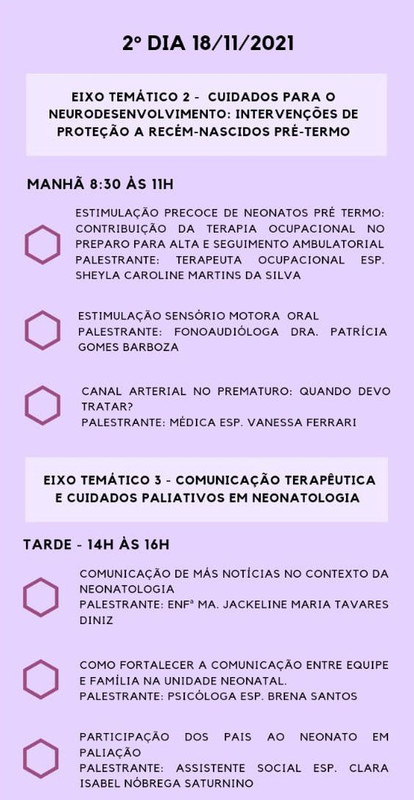 Programação do IV Encontro Interdisciplinar Neonatal - 2º dia