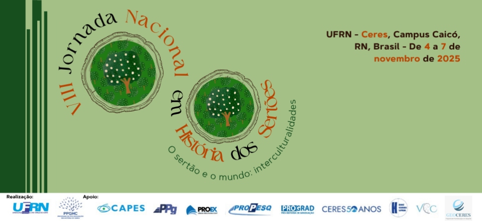Evento promovido pelo Programa de Pós-Graduação em História, do Centro de Ensino Superior do Seridó (CERES) da UFRN (PPGHC-UFRN). Conta com apoio da CAPES, por meio do Programa de Pós-Doutorado Estratégico (PDPG) e das Pró-Reitorias de Graduação (PROGRAD), de Pós-Graduação (PPg) de Pesquisa (PROPESq) e de Extensão Universitária (PROEx) da UFRN, por meio do Edital Integrado nº - Apoio à Realização de Eventos Integrados e do Departamento de História (DHC-CERES-UFRN).