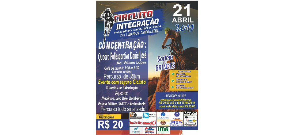 | 21 | Membro | José Manoel dos Santos | 99984-9314 | Luziápolis/Campo Alegre | pedalando.com |