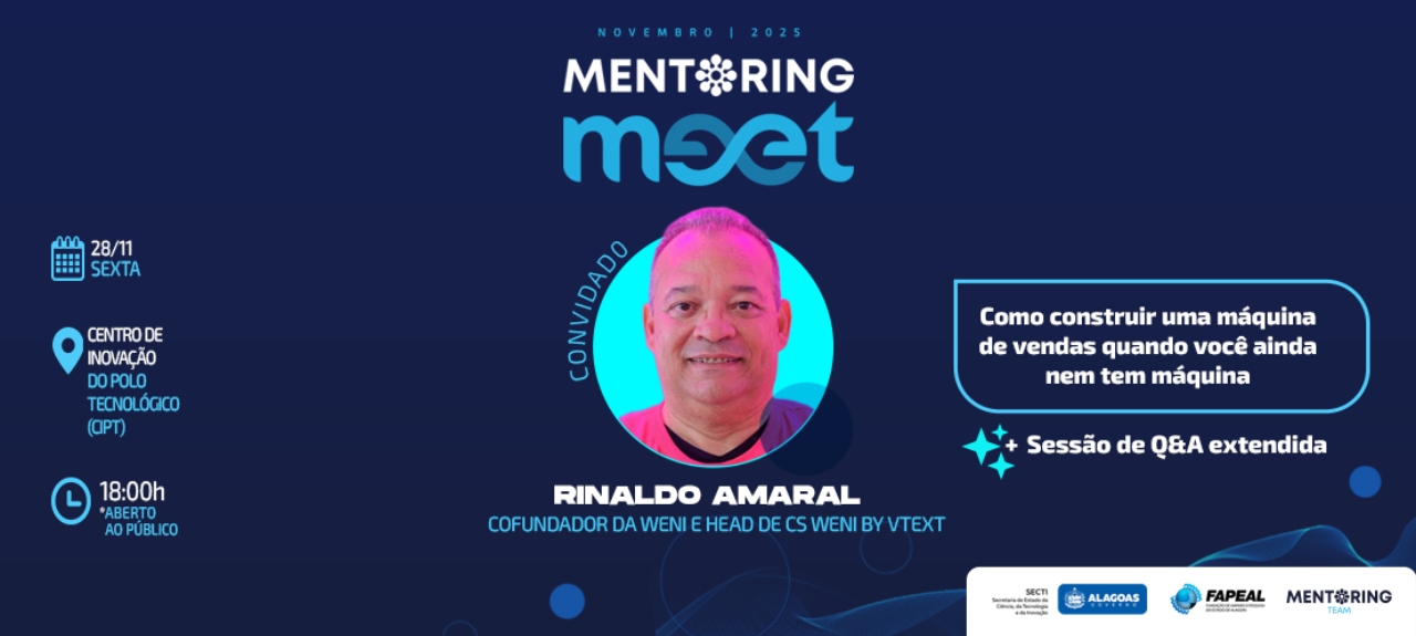 O Mentoring Meet é realizado toda última sexta-feira do mês, com o propósito de promover networking, aprendizado e inovação, fortalecendo o ecossistema de startups alagoanas.