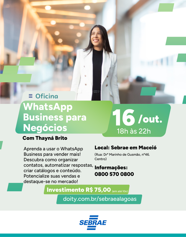 A Oficina WhatsApp Business para Negócios foi desenvolvida para quem deseja transformar o WhatsApp em um verdadeiro canal de vendas. Durante o encontro, você vai aprender a estruturar atendimentos, criar catálogos atrativos, automatizar respostas e utilizar ferramentas que facilitam o dia a dia. Mais do que vender, você vai descobrir como encantar o cliente e conquistar sua fidelidade.