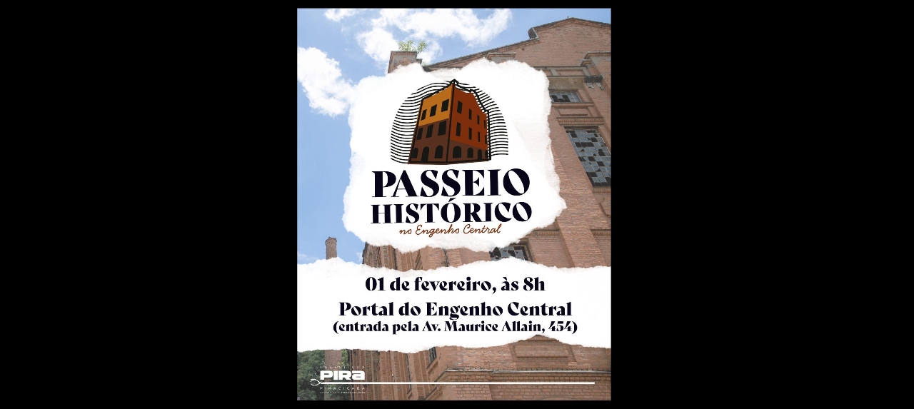 O Passeio histórico no Engenho Central tem como objetivo mostrar toda a história que contemplam os barracões criados nos séculos passados no complexo do Engenho Central, em Piracicaba-SP. Neste passeio, um historiador e um funcionário da Secretária Municipal de Cultura de Piracicaba acompanharão um grupo pelo espaço, dando detalhes sobre o funcionamento do Engenho Central e mostrarão como sua atividade com a cana-de-açúcar (como produção de açúcar e álcool) se conectava à economia da cidade e da região.
