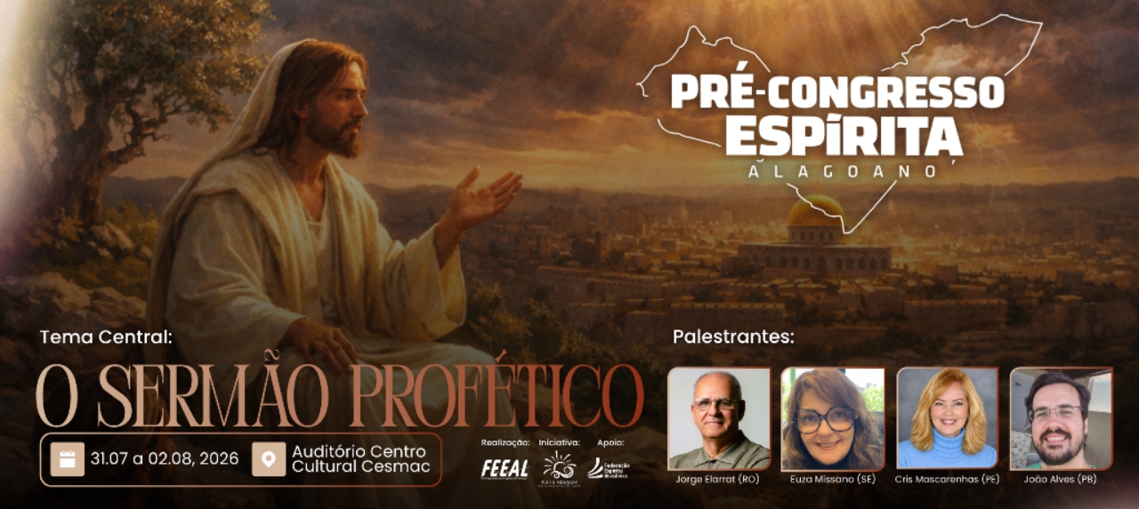 A Federação Espírita do Estado de Alagoas é uma organização religiosa, nos termos do inciso IV, do artigo 44, do Código Civil, sem fins econômicos e como tal promove estudos, palestras, seminários, congressos e outros eventos de caráter filosófico, educacional e cultural, objetivando levar a mensagem do Cristo que precisa ser conhecida, meditada, sentida e vivida, considerando a Regeneração da Humanidade.