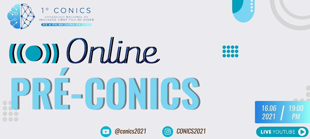 O Pré-Congresso Nacional de Iniciação Científica em Saúde (Pré-CONICS), será um evento online com certificação que ocorrerá no dia 16/06/2021 das 19:00 às 21:00 através da plataforma do youtube, nele serão abordados temas de suma importância para o aprendizado e crescimento profissional voltados para a área da pesquisa científica em saúde, seja bem-vindo ao I PRÉ-CONICS.